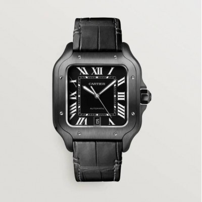 home > Cartier Santos Black Dial Large Size PVD WSSA0039 Unworn Rubber & Leather Strap